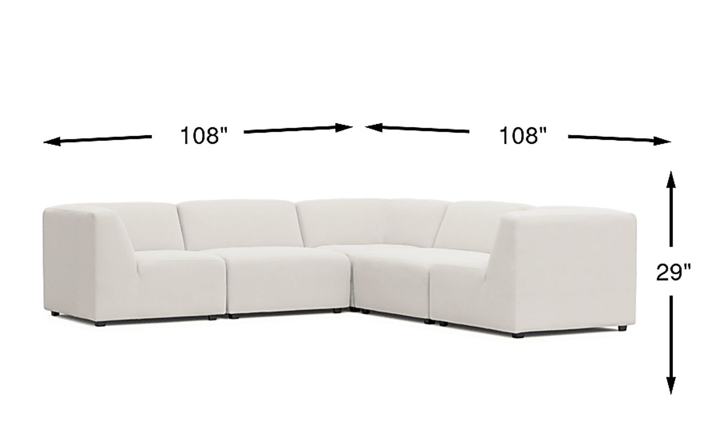 With overall dimensions of 108"W x 108"D, this sectional provides a generous 9-foot footprint in each direction when arranged in a classic L-shape. This scale is perfect for medium to large patios, offering comfortable seating for approximately five adults. Because it is modular, it also offers a practical solution for uniquely shaped decks where a fixed-shape sofa might not fit.