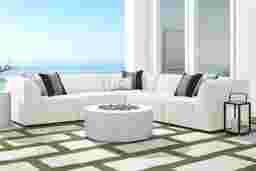 The good times get even better with the Calay sectional's versatile style and endless reconfigurability. This modular outdoor seating set from Cindy Crawford Home features vapor-colored slipcovers in UV-resistant, solution dyed Sunbrella fabric. Each seat frame has attached seat and back cushions, water-repellant upholstery and an individual cover, enabling every piece to be used separately or repositioned and connected as desired. Family cookouts, intimate get togethers and everyday relaxation are incredible every time when the seating arrangement you want is always at your fingertips. This set includes three corner wedges, two armless chairs and matching slipcovers. To clean Sunbrella fabric cushions remove dirt and spray on cleaning solution (water and mild soap), then use a soft bristle brush or sponge. Allow cleaning solution to soak into fabric and rinse thoroughly until soap residue is removed. Air dry. Do not dry clean.