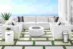 The good times get even better with the Calay sectional's versatile style and endless reconfigurability. This modular outdoor seating set from Cindy Crawford Home features vapor-colored slipcovers in UV-resistant, solution dyed Sunbrella fabric. Each seat frame has attached seat and back cushions, water-repellant upholstery and an individual cover, enabling every piece to be used separately or repositioned and connected as desired. Family cookouts, intimate get togethers and everyday relaxation are incredible every time when the seating arrangement you want is always at your fingertips. This set includes four corner wedges, four armless chairs and matching slipcovers. To clean Sunbrella fabric cushions remove dirt and spray on cleaning solution (water and mild soap), then use a soft bristle brush or sponge. Allow cleaning solution to soak into fabric and rinse thoroughly until soap residue is removed. Air dry. Do not dry clean.
