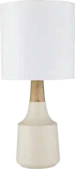 Yes. The ivory composition body features a natural wood-grain finish that perfectly complements coastal and casual aesthetics. Paired with a crisp white linen drum shade, this lamp provides a clean, contemporary look that lightens and refreshes any space.