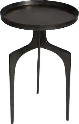 Providing an organic global feel, this Calera cast aluminum accent table features a shapely curved base and round top, finished in a plated antique bronze. Customer assembly is required.