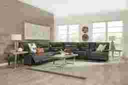 Contemporary style and comfortable seating are the highlights of the Caletta leather sectional from Cindy Crawford Home. Upholstered in gray top grain leather where the body touches, this sectional is a luxurious addition to your space. The inclusion of cupholders and a hidden storage console ensure that refreshments and all the other essentials are close at hand. Pillow arms, power reclining options and USB ports complete the piece for added comfort. Top Grain Leather Where the Body Touches and Polyurethane Fabric Sides and Backs.