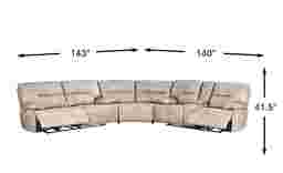 Like a breath of fresh air on a warm spring day, the Caletta Way sectional from Cindy Crawford Home brings a lively ambiance to your family's most lived-in room. Upholstered with luxurious top grain leather where the body touches, this piece is highlighted by pillow pad arms and striking contrast welt details that bring the beige color of the fabric to life. This total comfort package features dual power reclining relaxation with power adjustable head and footrests that are perfect for all the days that end in Y. The sectional also boasts a center lift-top storage console and a pair of cup holders. You can even charge some of your favorite electronic devices with the convenient USB-A ports while you relax. Upholstery: Top grain leather where the body touches and polyurethane fabric sides and backs. Leather is a durable, low maintenance product, however, general regular maintenance is necessary. To keep your leather clean, vacuum it regularly, removing any dust, and clean it with water and a mild non-detergent soap.