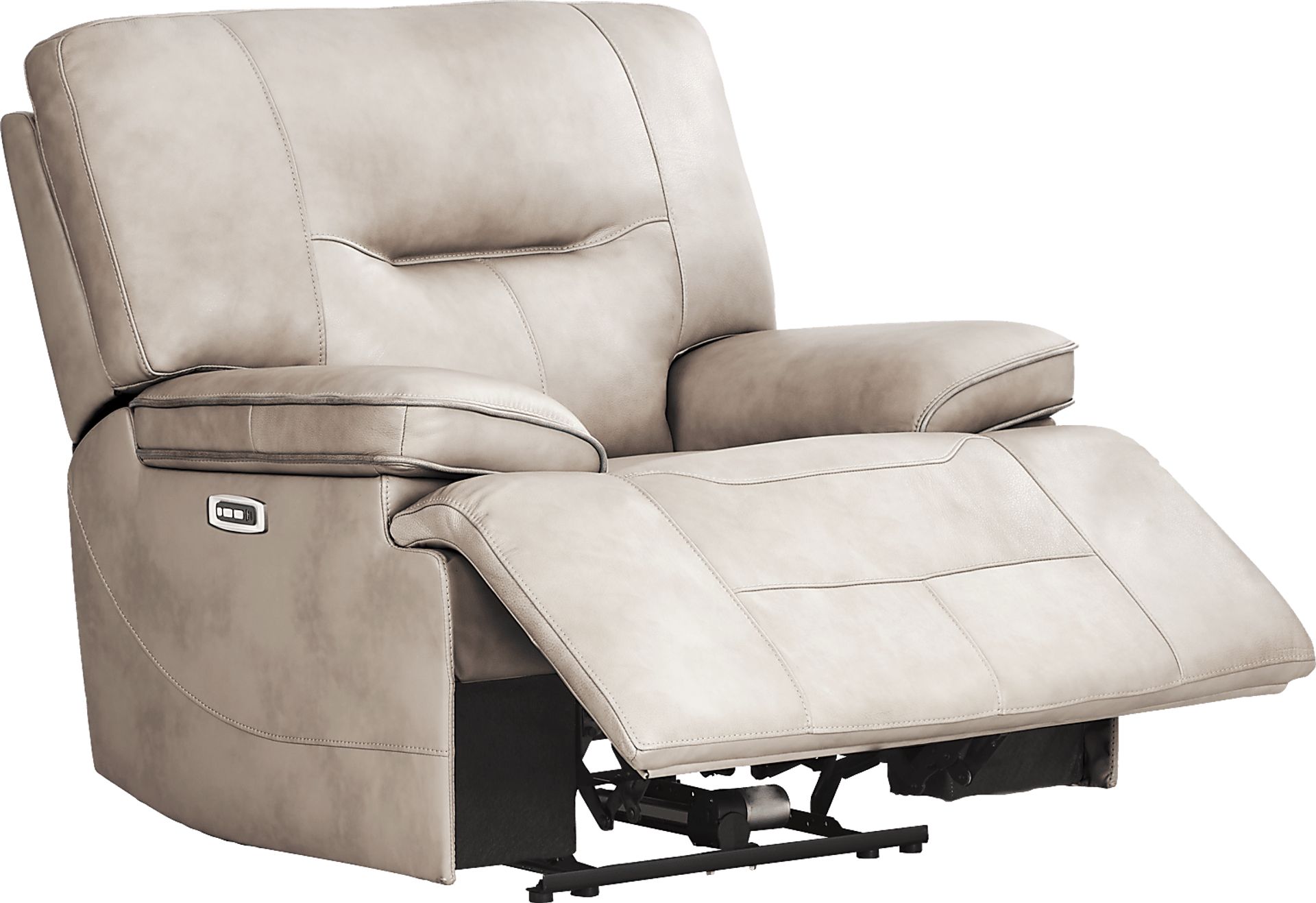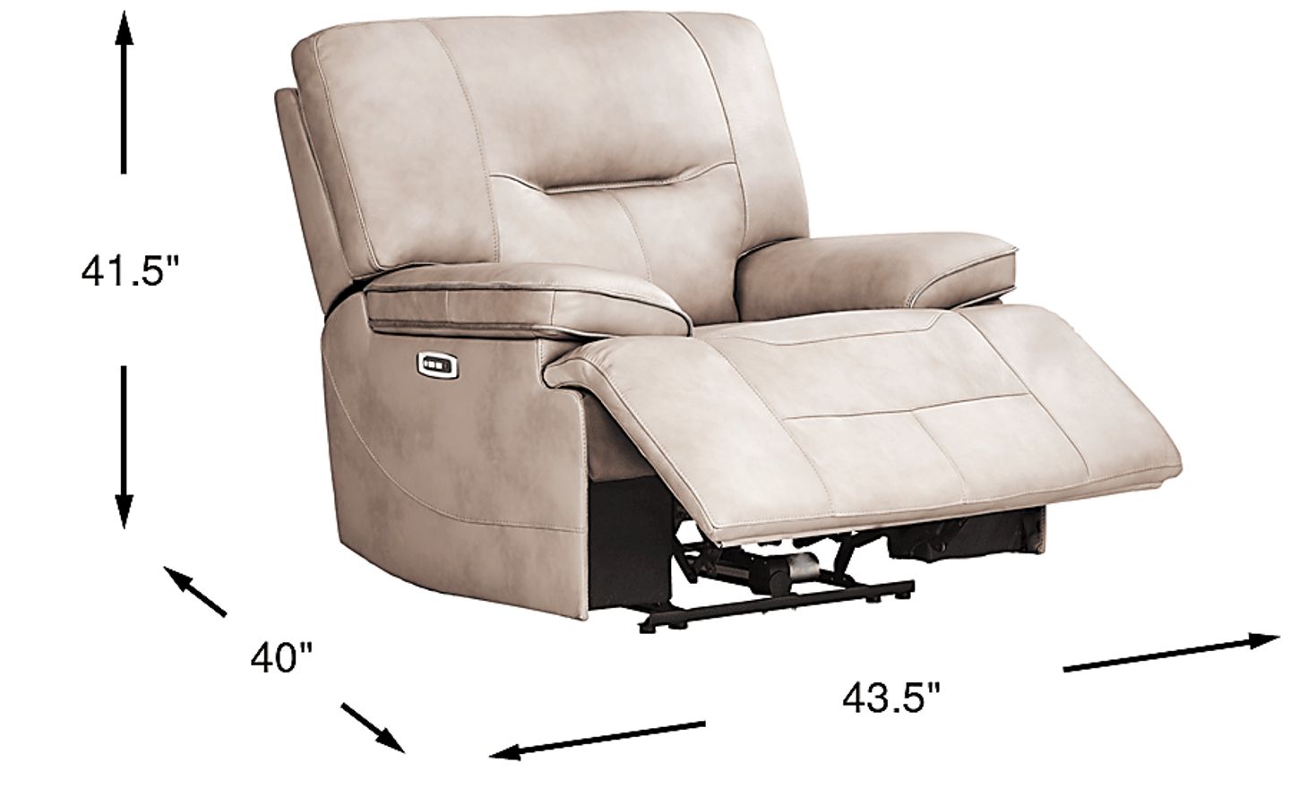 Like a breath of fresh air on a warm spring day, the Caletta Way recliner from Cindy Crawford Home brings a lively ambiance to your family's most lived-in room. Upholstered with luxurious top grain leather where the body touches, this piece is highlighted by pillow pad arms and striking contrast welt details that bring the beige color of the fabric to life. Dual power reclining relaxation is the total package with a power adjustable head and footrest that are perfect for all the days that end in Y. You can even charge some of your favorite electronic devices with the convenient USB-A port while you relax. Upholstery: Top grain leather where the body touches and polyurethane fabric sides and backs. Leather is a durable, low maintenance product, however, general regular maintenance is necessary. To keep your leather clean, vacuum it regularly, removing any dust, and clean it with water and a mild non-detergent soap.