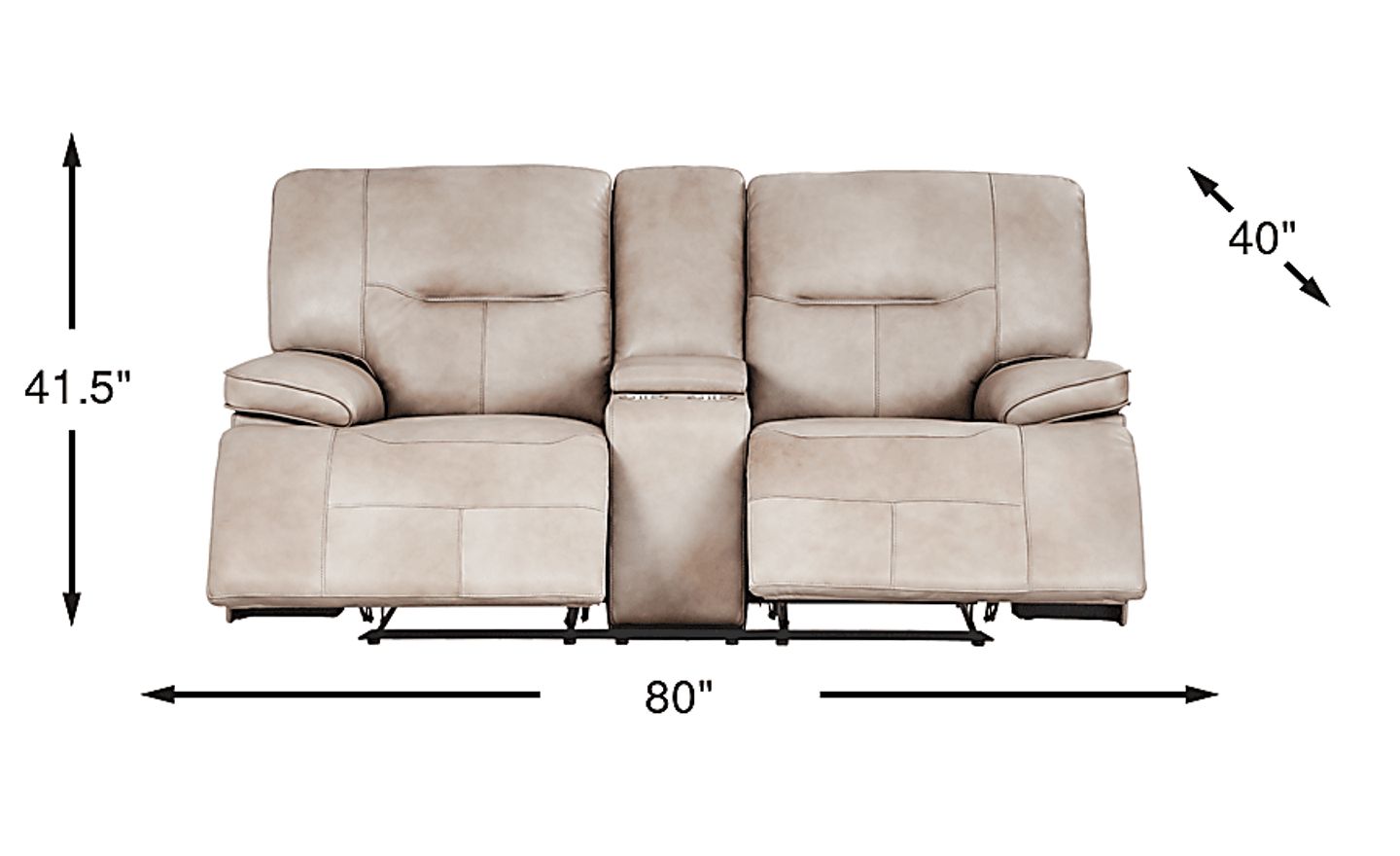 Like a breath of fresh air on a warm spring day, the Caletta Way loveseat from Cindy Crawford Home brings a lively ambiance to your family's most lived-in room. Upholstered with luxurious top grain leather where the body touches, this piece is highlighted by pillow pad arms and striking contrast welt details that bring the beige color of the fabric to life. The loveseat has non-power reclining features and a center lift-top storage console alongside a pair of cup holders. Upholstery: Top grain leather where the body touches and polyurethane fabric sides and backs. Leather is a durable, low maintenance product, however, general regular maintenance is necessary. To keep your leather clean, vacuum it regularly, removing any dust, and clean it with water and a mild non-detergent soap.