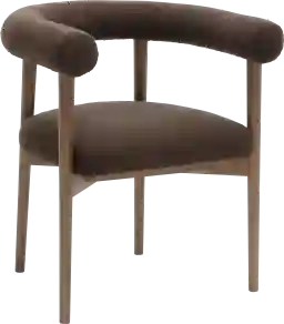 Scandinavian-inspired with a modern twist, the Calewood dark brown armchair pairs clean Nordic lines with richly textured performance boucle. The curved silhouette, plush upholstery, and soft matte wood tones make it a cozy, design-forward choice for any dining setup.