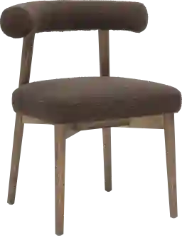 Scandinavian-inspired with a modern twist, the Calewood dark brown side chair pairs clean Nordic lines with richly textured performance boucle. The curved silhouette, plush upholstery, and soft matte wood tones make it a cozy, design-forward choice for any dining setup.