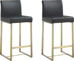 Furnish your kitchen or bar area in contemporary style with the Caliael counter height stool. The gold solid stainless steel frame provides a sturdy base, while the plush seat and footrest ensure maximum comfort. The combination of angles and gentle curves gives this stool an eye-catching appearance, while the black upholstery allows it to match well with any decor. Customer assembly is required.