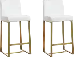 Furnish your kitchen or bar area in contemporary style with the Caliael counter height stool. The gold solid stainless steel frame provides a sturdy base, while the plush seat and footrest ensure maximum comfort. The combination of angles and gentle curves gives this stool an eye-catching appearance, while the white upholstery allows it to match well with any decor. Customer assembly is required.