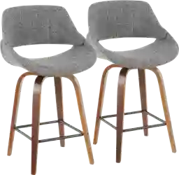 The wide and welcoming seat of the Caliborne counter stool beckons one to sit and relax. A curved back and contoured upholstered seat is accented by flared walnut wood swivel legs that add to the stylish yet comfortable design. Customer assembly is requir