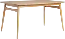 This table is a quintessential example of mid-century modern design, characterized by its organic natural finish, simple rectangular silhouette, and iconic tapered legs. It pairs effortlessly with transitional or retro-inspired seating—such as chairs with spindled backs or textured upholstery—to create a curated and timeless dining environment.