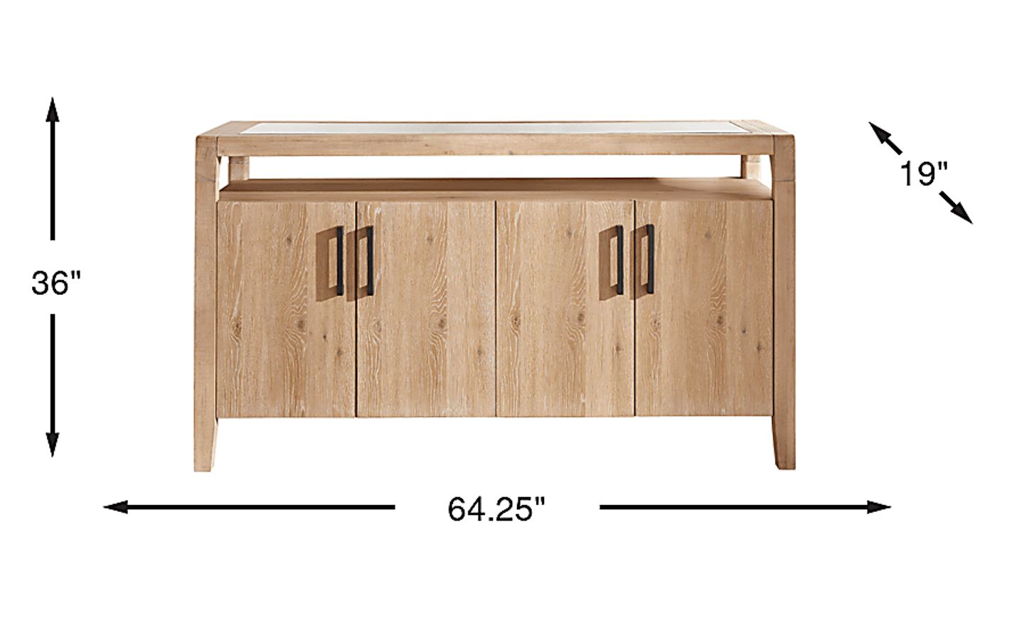 Boasting a rich blend art deco elements with minimalist flair, the Callen Way sideboard offers a chic, contemporary storage solution to style up your dining room. Crafted of hardwood solids and knotty oak veneers, this piece features a glass top counter with four doors that open to reveal internal storage for bottles, glasses and more. The side board's buttery beige color is complimented by graphite hardware for a perfect final look.