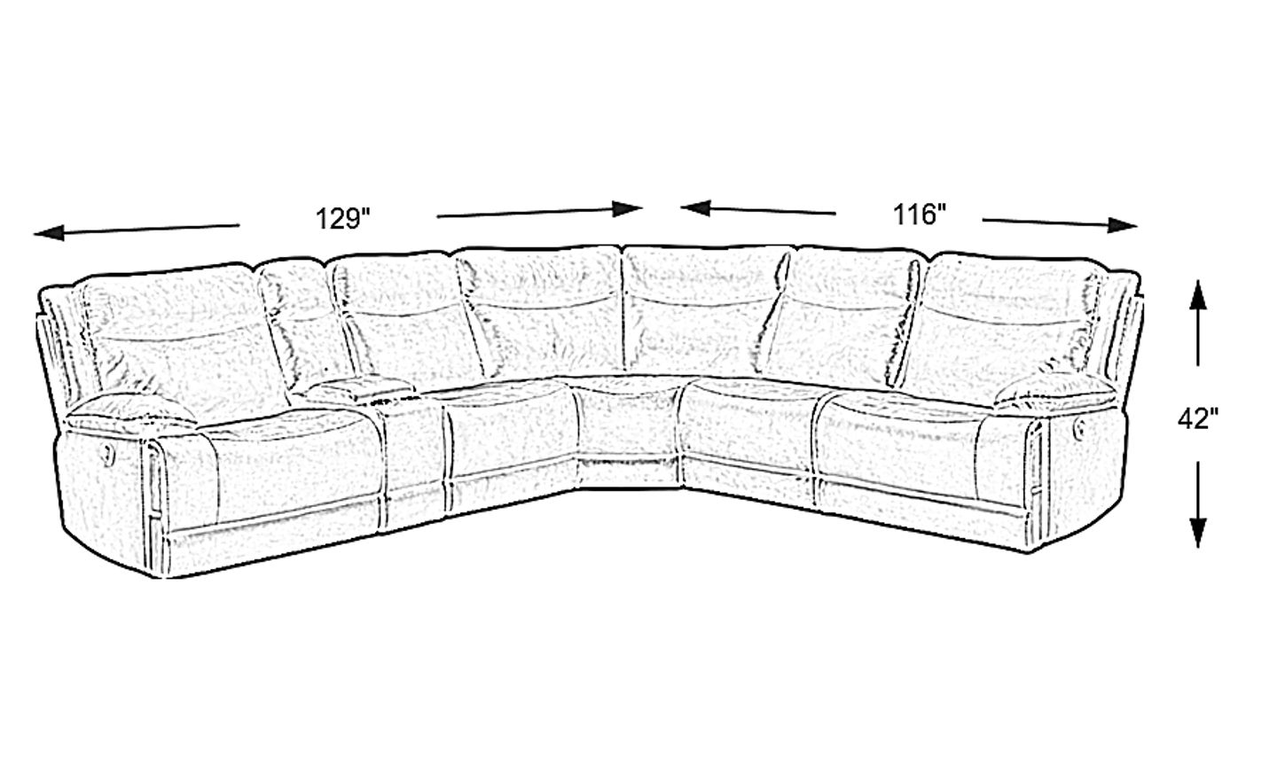 A symbol of relaxation, the Calverton sectional brings modern comfort to your home. Upholstered in supple fabric with a rich chocolate color, this contemporary sectional has a luxuriously padded frame with contrast stitching details. The power reclining feature allows you to raise and lower the footrests at the touch of a button for individualized comfort. Featuring a double cupholder with lift-top storage, this sectional offers modern convenience along with comfort. With three power recliners included, this collection offers enough room for the whole family to kick back and relax. Upholstery: 100% Polyester