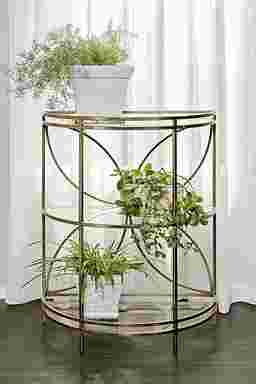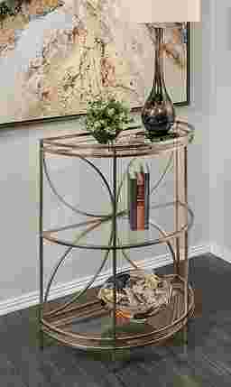 The petaled cutout design featured on Calypsa console table is subtly stylish and seriously sophisticated. Three glass shelves make the console table fabulously functional and oh so chic. The Calypsa is a perfect for entryways and hallways. Customer assembly is required.