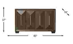 Storage gets chic with the cool, contemporary style of the Cambrian Court server. Crafted of poplar solids and ash veneers in a rich brown finish, this versatile piece features four unique faceted doors, each adorned with a sleek elongated gold finished handle. Inside are two adjustable shelves and two drawers, providing plenty of storage for serving pieces, table linens and more.