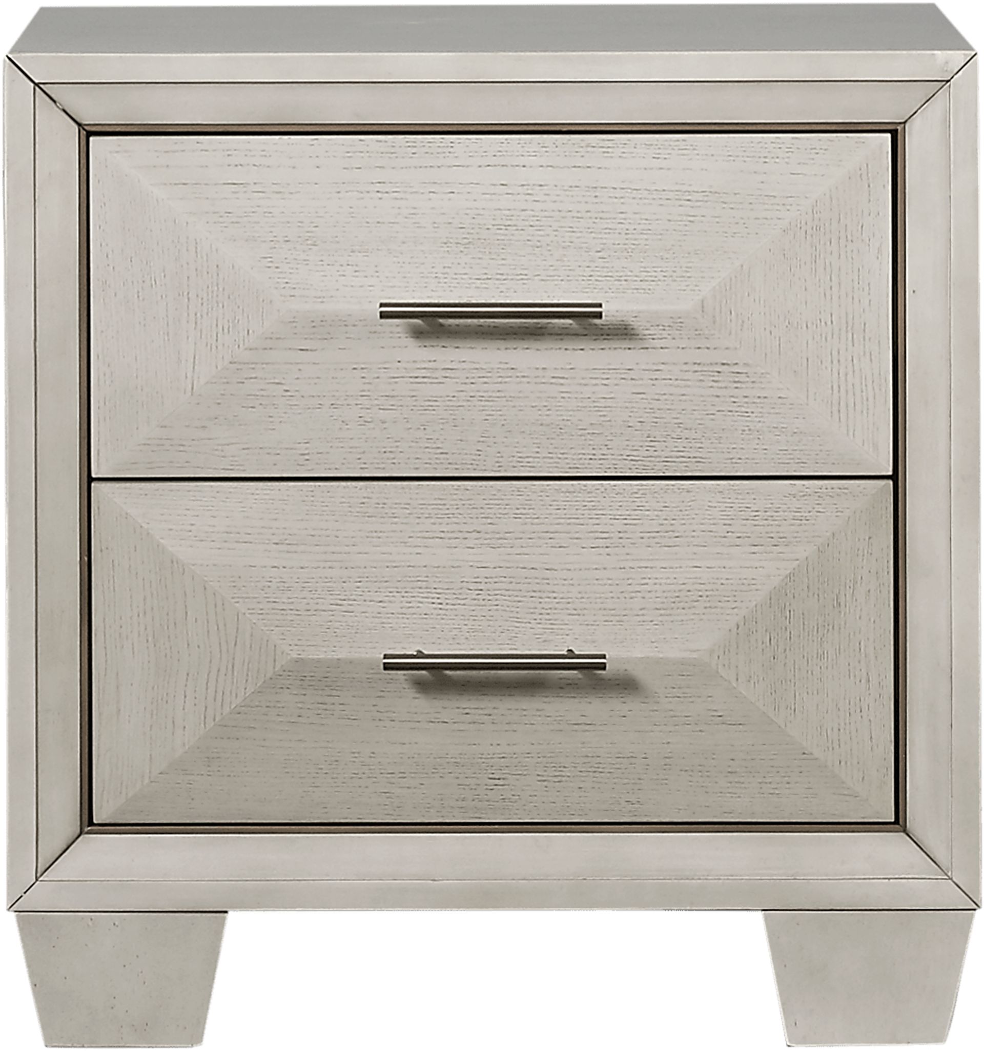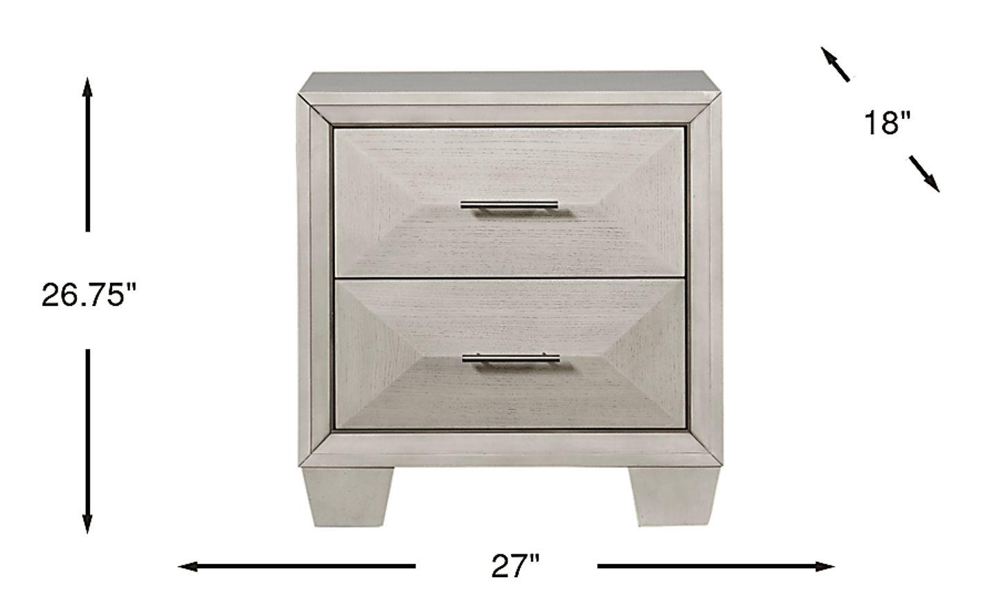 A stylish beside companion, the Cambrian Court nightstand adds a contemporary touch to your bedroom. Crafted of poplar and wood solids with white ash veneers in an ash white finish, this designer quality nightstand features premium English and French dovetail drawer construction. Unique raised faceted panels on the drawer fronts, beautifully accented with gold finished trim and bar pulls, creates a sweet, sophisticated look.