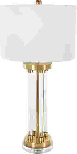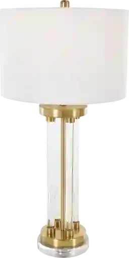 Indulge in the glamorous luxury of plush textures, dazzling details, and sleek finishes to elevate your home and add a sophisticated flair with the Camdon Gold Lamp. Made from high-quality crystal, metal, plastic, and linen, this table lamp is not only beautiful but also durable. It boasts a clear crystal rods design on stunning polished gold and silver base topped off with a white drum shade. With its unique rods design and gold and silver base, this lamp serves as a striking decorative piece in any setting. Partial assembly may be required.