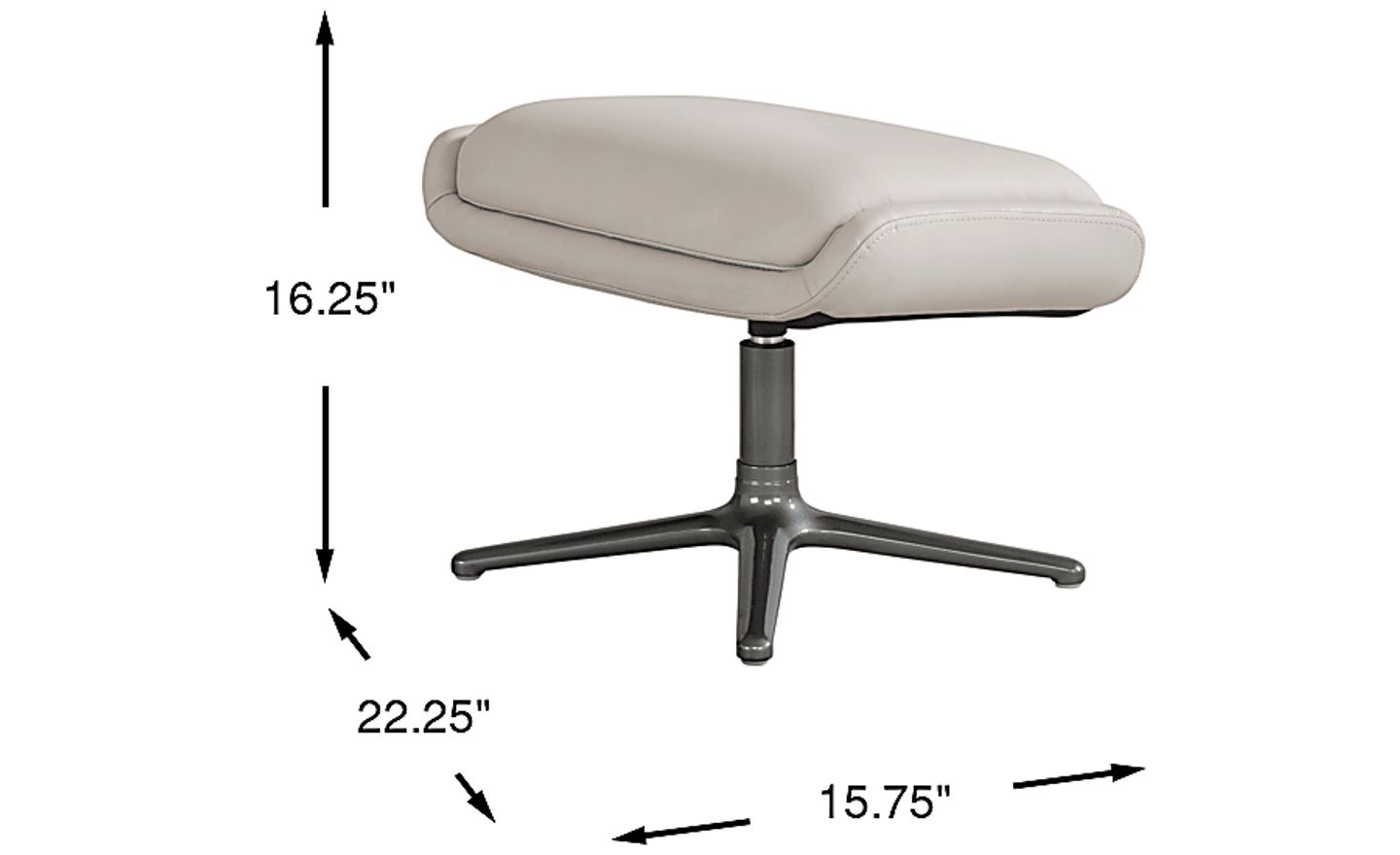 The Camelot ottoman brings modern sophistication to any setting with its low-profile design and tailored dove gray leather where the body touches. Supported by polished metal legs, this piece balances comfort and style with ease. Perfect as a footrest, extra seat or accent, it completes the collection with timeless mid-century elegance reimagined for today. Top grain leather where the body touches and polyurethane fabric sides and backs.