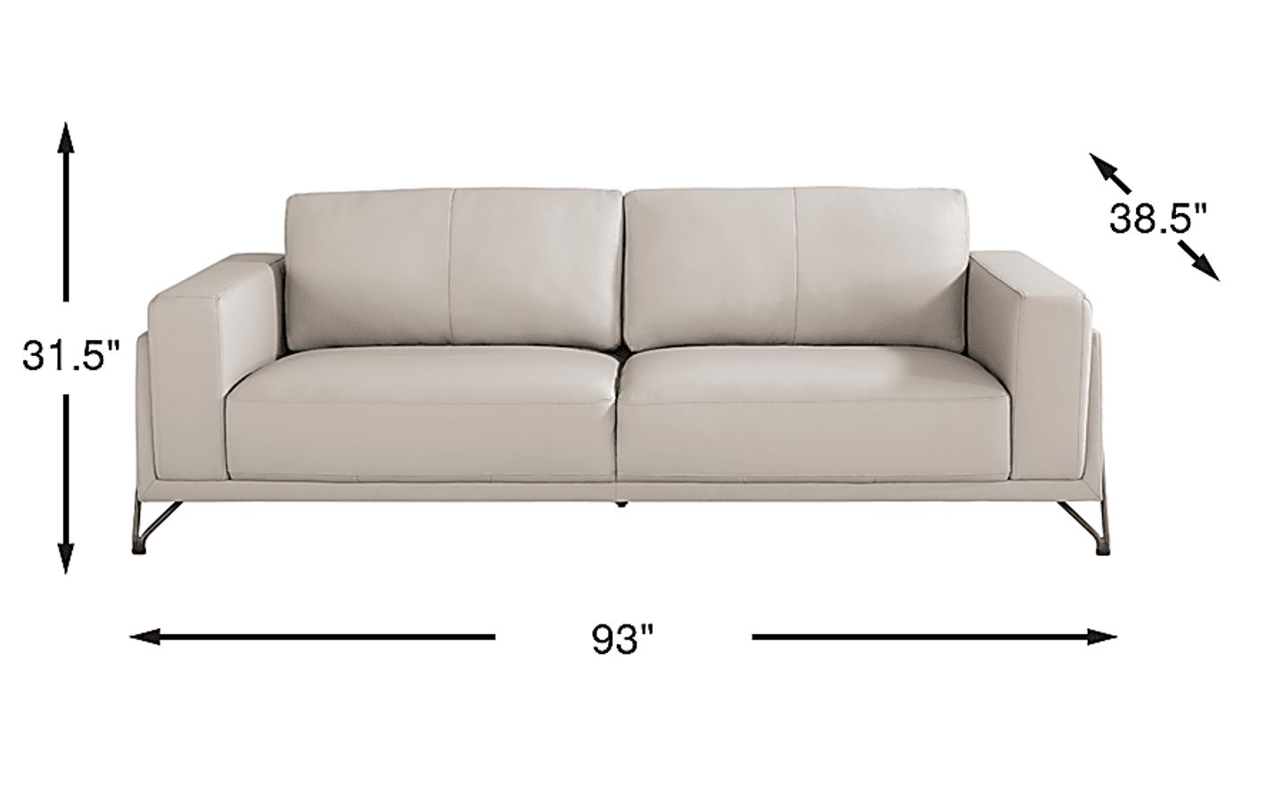 Commanding attention with ease, the Camelot sofa embodies modern sophistication at its finest. Featuring a low-profile silhouette draped in sumptuous top grain leather where the body touches, this piece strikes the perfect balance between refinement and comfort. Framed by sleek track arms and polished metal legs, the look's tailored stitching lends a crisp, contemporary edge. The upholstery's dove gray color sets a versatile foundation that complements both bold accents and subtle touches, resulting in a sofa that captures timeless mid-century elegance, reimagined for today. Top grain leather where the body touches and polyurethane fabric sides and backs.