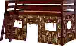 Watch as your little one's eyes light up when you present them with the ultimate childhood fantasy. The Camo Cabin loft bed is every child's dream come true, thanks to a fun lower level playhouse. Rendered in a rich brown cherry finish with camouflage fabric, this delightful bed's charm is in its attention to detail.