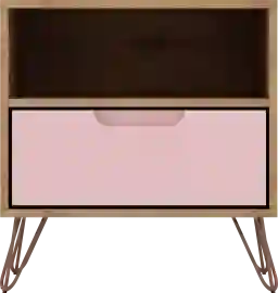 Moonlighting as an end table or armchair sidekick, the Camomile IV pink nightstand is seamless and sophisticated, with plenty of Mid-century flair, enhanced by edgy metal splayed legs, cutout drawer handles, and clean lines, to feature one sophisticated design. Tuck away remotes, books, tablets, and more, in the concealed drawer space, and keep magazines, laptops, or books, in the open shelf space for easy access. Add a decorative lamp and favorite framed photos on its base and set it in the living room or bedroom to finish off the space. Customer assembly is required.