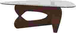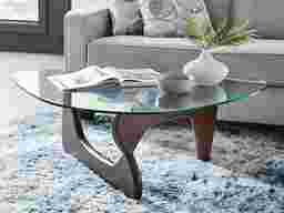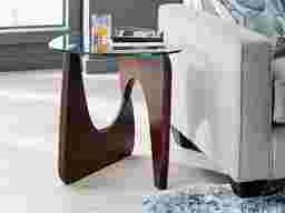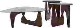Tantalizing curves and imaginative design take the spotlight when it's time to settle in around the Candela table set for coffee and conversation. This midcentury style collection features a cocktail table and two end tables with rounded triangular tops crafted of tempered glass so guests can marvel at the shapes of the pedestal bases beneath. Built of solid hardwood in interconnected "L" shapes, each base is finished in a merlot color to accentuate its curves and the breathtaking negative space between.