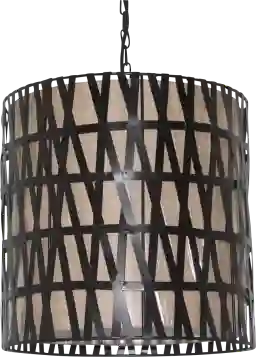 This pendant is designed with a dual-layered aesthetic featuring an outer weathered bronze woven metal cage and a burlap inner shade. The fabric shade acts as a natural diffuser, softening the light to create a warm, ambient glow. This makes it an excellent choice for transitional living spaces where you want to provide comfortable, glare-free light for dining or relaxing.