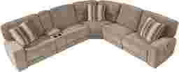 With spacious seating for six, the large, taupe, L-shaped Candova sectional is big on both space and style. Comprised of chic, soft vertically ribbed chenille, this piece features button tufts on the sides and three large correlating multicolor woven chenille accent pillows. Thanks to three power recliners that are made for languidly lounging, a storage-console unit that's ideal for small effects like remotes, keys, and cords, and two handy cup holders, this transitional sectional is perfect for simply sitting or snoozing. Candova 4 Pc Sectional100% Polyester