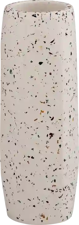 The speckled "terrazzo" look is a hallmark of contemporary and mid-century modern design. This vase's neutral white color family allows it to blend seamlessly into minimalist environments while providing a subtle textural contrast. It serves as a sophisticated bridge between industrial concrete textures and clean, modern lines.