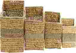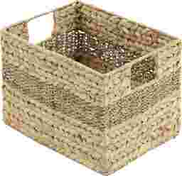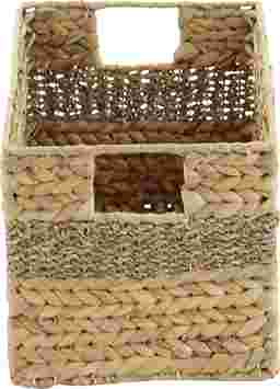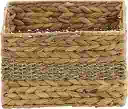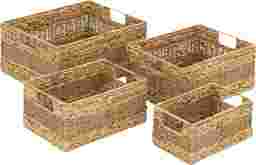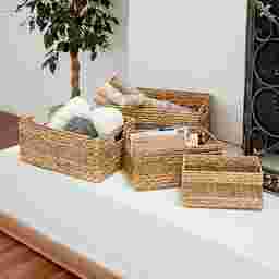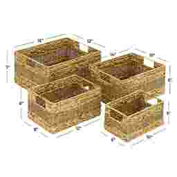 Inspired by blissful serenity and the allure of the sea, where soothing hues and natural textures bring effortless charm to the home. The Canle light brown decorative and functional storage basket set is made of seagrass, ensuring durability and style. The rectangle basket for organizing set features textured brown finishes with different shades, creating an earthy aesthetic in any room. The storage baskets boasts braided and interlocked plant fibers, complete with convenient handles for easy transport. Each light brown seagrass storage basket measures 10L x 6W x 5H, 12L x 8W x 6H, 14L x 10W x 6H, 16L x 12W x 7H inches, and collectively weighs 5.78 lbs.
