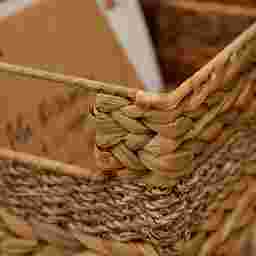 To maintain the appearance of the camel brown finish, we recommend regular dusting with a soft, dry cloth or using a vacuum cleaner with a brush attachment to reach into the textured crevices. For a deeper clean, you can wipe the fibers with a slightly damp cloth, but ensure the basket is allowed to air dry completely in a well-ventilated area to preserve the integrity of the natural plant fibers.