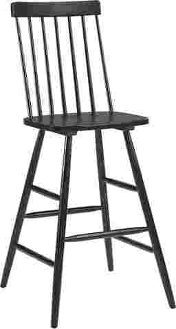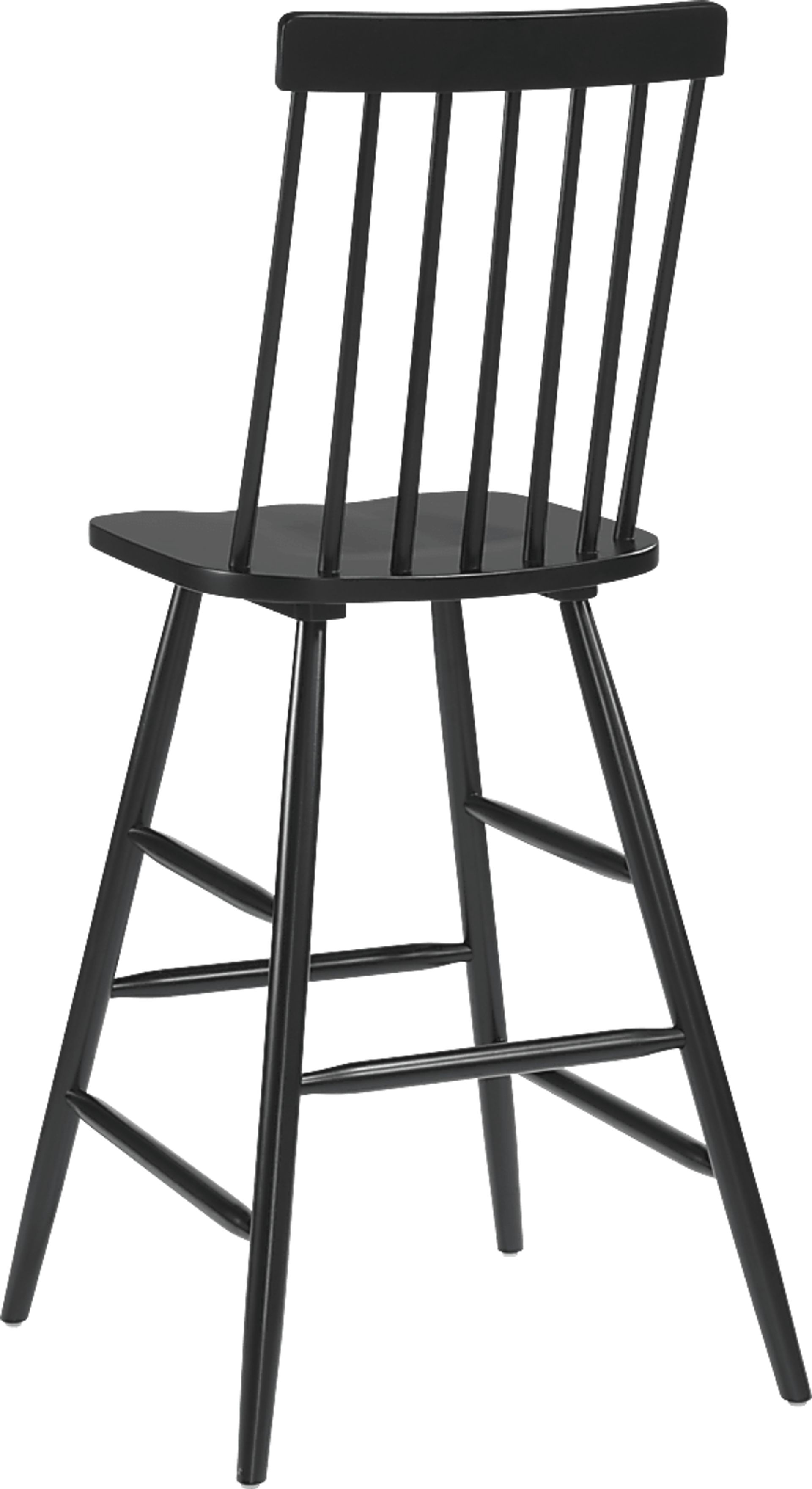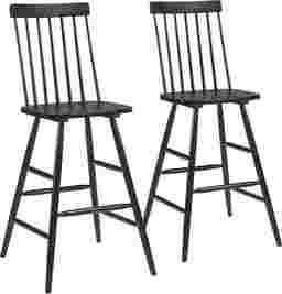 The Cannada counter stool set features time-honored spindles, saddle seat and curved back. Made of rubberwood, the chair is stained deep black for contrast. Perfect for a spin on any mid century modern, urban, or industrial space. Customer assembly required.