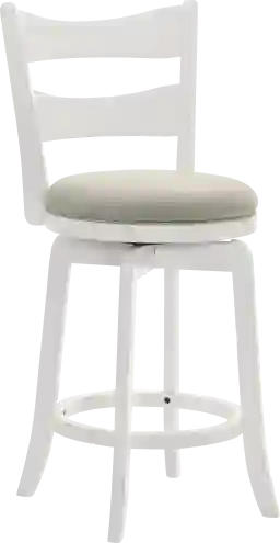 Introducing the Cannonics II white and beige barstool, a stylish and functional addition to any home. The round seat shape, upholstered in a soft fog color, offers a contemporary look that complements various decor styles. Crafted from durable rubberwood and polyester, this stool showcases a sleek white finish that enhances its modern aesthetic. The finish is applied meticulously, ensuring a smooth and elegant appearance. Designed with practicality in mind, this stool includes a footrest for added comfort during prolonged seating. Its armless design allows for easy movement and versatility, making it suitable for both casual gatherings and formal occasions. Customer assembly required.