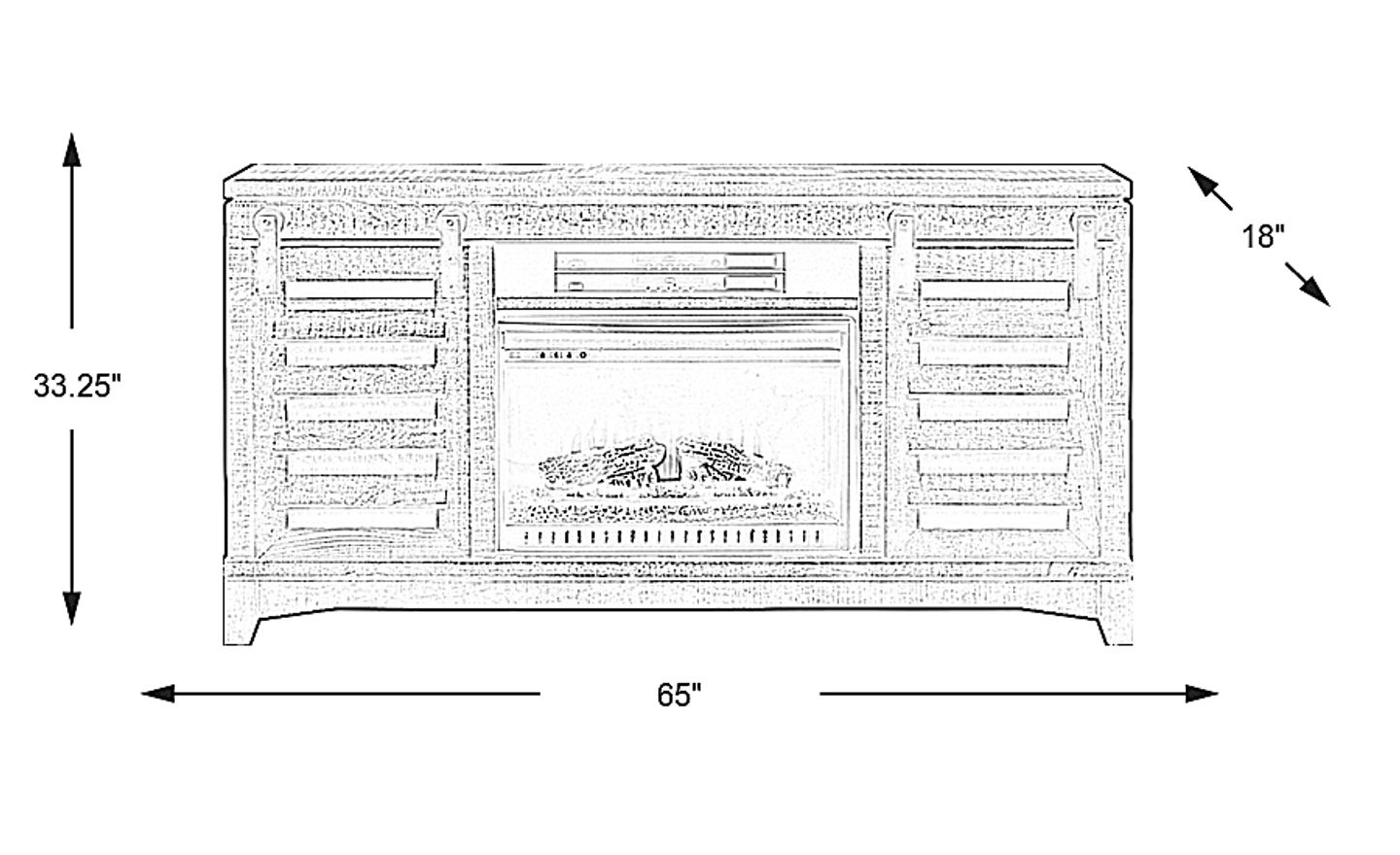 Crafted of pine solids and cedar veneers in a rich tobacco finish, the 65 inch Canoe Creek II console offers an industrial chic media storage solution. Featuring a slatted sliding door front and four drawers this console has all of your storage needs covered. Pass through holes on the back panel keep wires neatly corralled. Metal rails and hardware in a gunmetal finish reinforce the on-trend industrial aesthetic. The electric fireplace features innovative flame effects on bricks and logs for added depth and 3D realism. A convenient remote control adjusts the flame and glow levels and includes a built-in timer (from 30 minutes to 60 hours). The adjustable thermostat ranges from 62 degrees to 82 degrees.