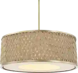 The drum design, combined with a beige fabric shade and a woven natural texture, is specifically engineered to provide soft, diffused ambient lighting. Unlike open-bulb fixtures that can create harsh glares, this piece filters light to create a "soft, golden glow," making it an excellent choice for areas intended for relaxation, such as a coastal-inspired bedroom or a transitional living space.