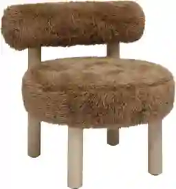 This chair features 100% polyester vegan shearling with a "long hair" appearance. It is designed to provide the same luxurious, high-pile texture and warmth as authentic sheepskin while remaining animal-friendly. The result is a supremely soft, textural fabric that adds a cozy, contemporary layer to your decor, making it an excellent tactile contrast to smoother materials like leather or wood.