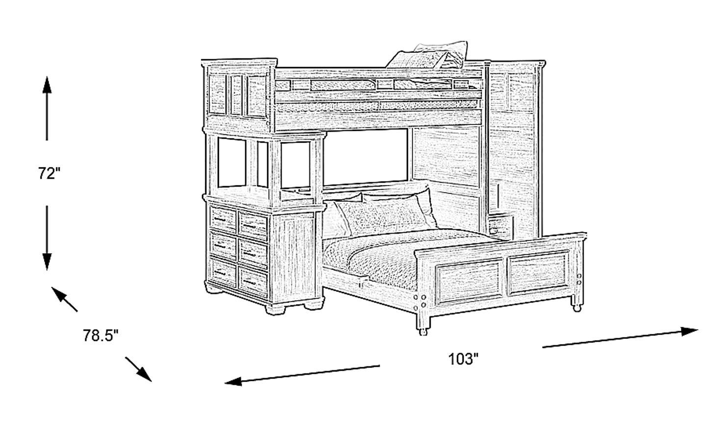 Maximize space with the Canyon Lake bunk. Featuring a classic design that is sure to stay in style, this piece provides space for sleep while opening the room up for activities. Crafted with pine veneers in an ash gray finish this bunk is durable and safe for kids. A step attachment (adjustable to either end) provides safe access to the top bunk and has built-in storage drawers to maximize space. This bunk features a built-in dresser at one end for handy storage that saves space! Bunkie boards required. Mattresses and foundations (if required) sold separately.