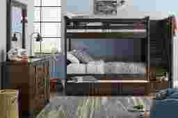 Maximize space with the Canyon Lake bunk. Featuring a classic design that is sure to stay in style, this piece provides space for sleep while opening the room up for activities. Crafted of pine solids and veneers in a rich java finish this bunk is durable and safe for kids. A step attachment (adjustable to either end) provides safe access to the top bunk and has built-in storage drawers to maximize space. Additional configurations offer built-in dressers, desks and more as practical attachments! Bunkie boards required. Mattresses and foundations (if required) sold separately.