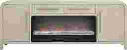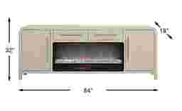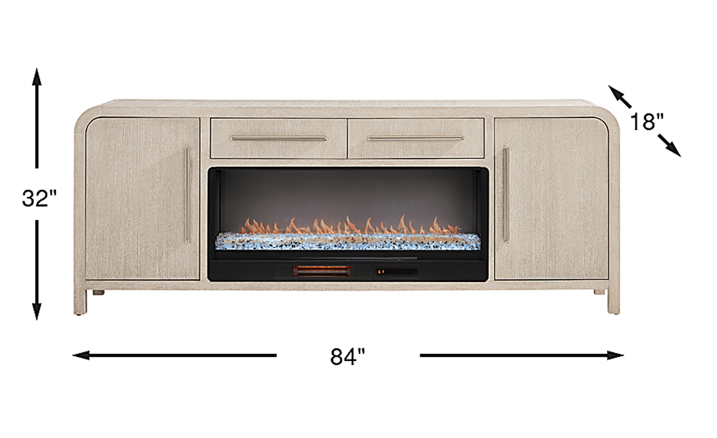 Subtle art deco flair infused with warm, family-friendly appeal gives the Drew & Jonathan Canyon console its signature sophistication. Constructed with oak veneers in a light gray finish, this contemporary piece features a rounded frame and silver metal pulls, providing a soft holistic look. Cabinets on either end hide shelves and storage, while two top drawers offer even more space for media, electronics and living room essentials. At the center lies an energy-saving LED firebox that provides remote-controlled heat and ambient lighting with four color-changing options, creating a warm and cozy atmosphere at the touch of a button.