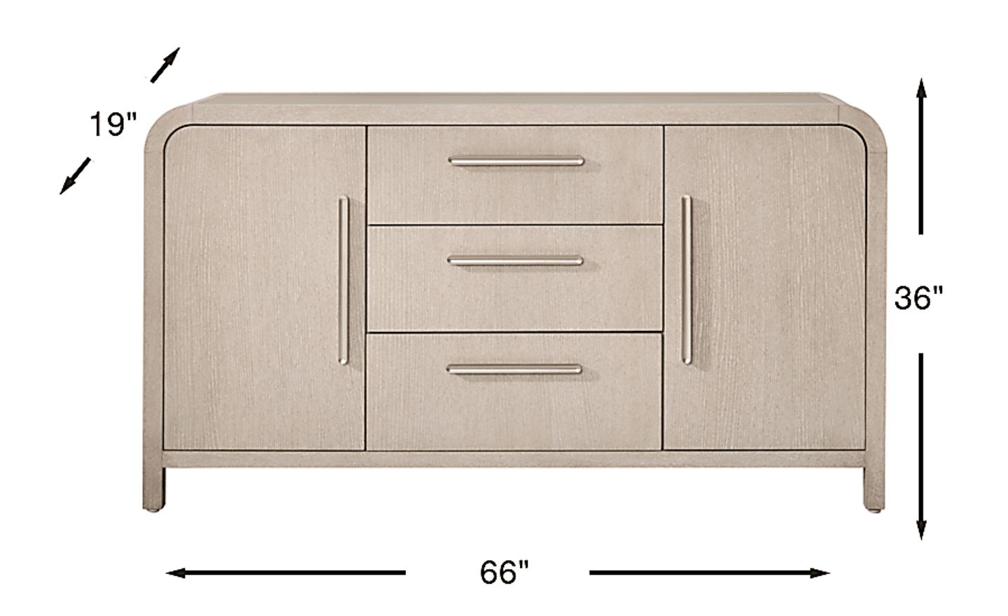 Yes, this buffet is highly suitable for urban or smaller-scale living. While it provides a generous 66-inch serving surface, its contemporary "stirrup-style" bends and organic lines create a visual lightness that prevents it from overwhelming a room. The light gray finish is a versatile neutral that reflects light, helping a smaller dining space feel more open and airy rather than cramped.