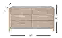 Exuding a calm and meditative ambiance, the Drew & Jonathan Canyon dresser's natural elements and curved design presents a warm sophistication for your personal retreat. Constructed with oak veneers in a light gray finish, this contemporary piece features a rounded frame and silver metal pulls, providing a soft holistic look. French dovetail construction in the front and English dovetail in the back with full extension ball-bearing glides secure the support and longevity of all six drawers.