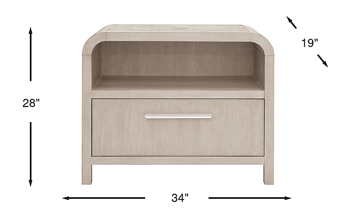 With a width of 34 inches, this nightstand is scaled larger than standard bedside tables, making it a perfect "statement" piece for spacious primary bedrooms. Its curved frame and rounded design offer a sophisticated silhouette that fills out the space next to a king or queen-sized bed without feeling bulky or imposing.