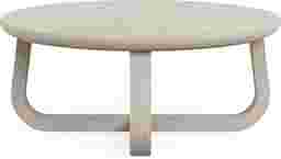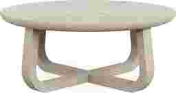 Gather 'round in light and lively style with the inspired Drew & Jonathan Canyon cocktail table. Contemporary flair, a round top and oak veneers in a light gray wash gives this piece a look that's equal parts unique and familiar. The crossed base creates space for storage as well as an interesting stirrup design, and the natural material and bent shapes evoke unmistakable midcentury character.