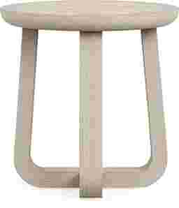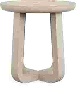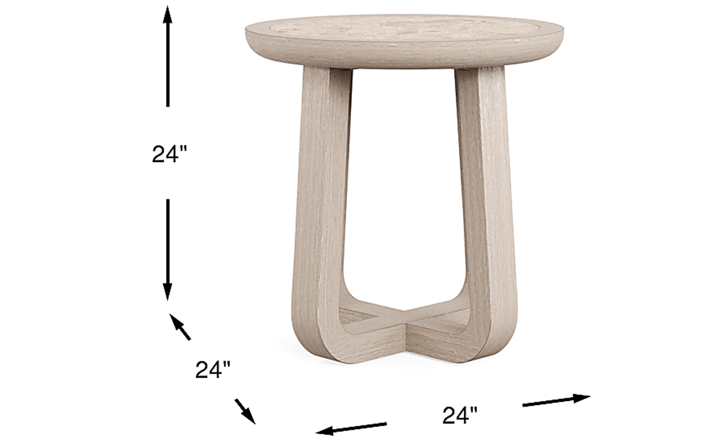 Gather 'round in light and lively style with the inspired Drew & Jonathan Canyon end table. Contemporary flair, a round stone top and oak veneers in a light gray wash gives this piece a look that's equal parts unique and familiar. The crossed base creates space for storage as well as an interesting stirrup design, and the natural material and bent shapes evoke unmistakable midcentury character.