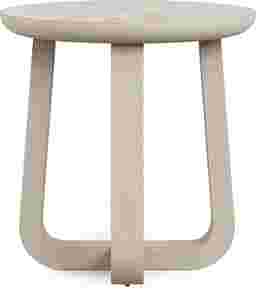 Gather 'round in light and lively style with the inspired Drew & Jonathan Canyon end table. Contemporary flair, a round top and oak veneers in a light gray wash gives this piece a look that's equal parts unique and familiar. The crossed base creates space for storage as well as an interesting stirrup design, and the natural material and bent shapes evoke unmistakable midcentury character.