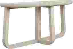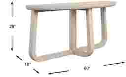 Gather 'round in light and lively style with the inspired Drew & Jonathan Canyon sofa table. Contemporary flair and a light gray wash give this piece a look that's equal parts unique and familiar. The crossed base creates an interesting stirrup design, and the natural material and bent shapes evoke unmistakable midcentury character. Oak veneers make this piece easy to care for and enjoy for years to come.
