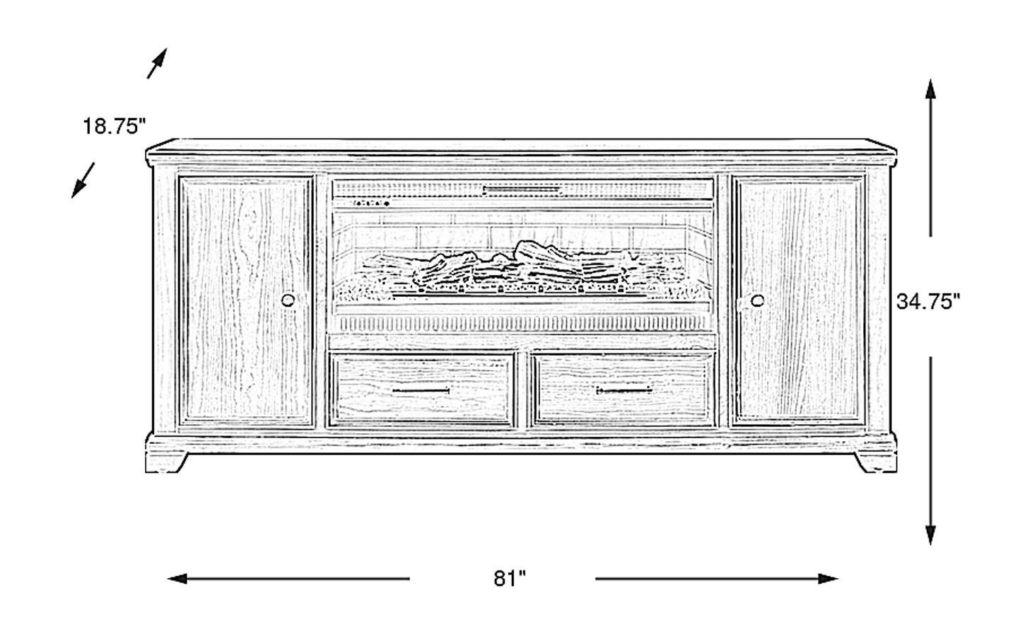like the warm glow of a sunbeam on a crisp fall day, the Canyon River console creates a playful haven where light dances across each luxurious surface. This contemporary accent is crafted with pine veneers in an indulgent java finish. Two cabinets provide wire management and ample space for entertainment devices or decorative accents. Two drawers below feature bronzed metal bar pull hardware, echoing the knobs on each cabinet. This piece comes with an electric "log" fireplace that features innovative flame effects on bricks and logs for added depth and 3D realism. A convenient remote controls glow levels and includes a built-in timer and adjustable thermostat.