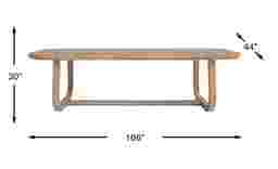 Subtle art deco flair infused with warm, family-friendly appeal is the hallmark of the captivating curves and lines of the Drew & Jonathan Canyon dining table. This piece exudes contemporary charm with quarter-cut oak veneers in a sand colored finish shaped into organic stirrup-style bends. An open double-pedestal design showcases the table's interconnected base, and the handsome curved edge on the tabletop invites comfortable, casual enjoyment.