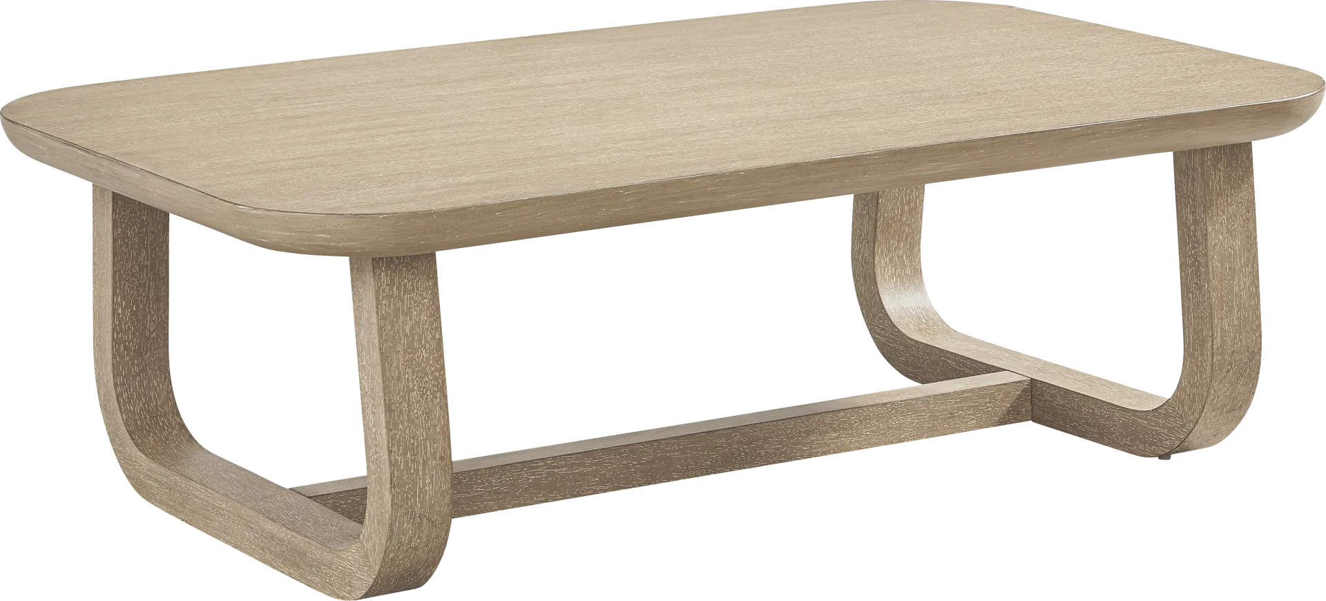 Gather 'round in light and lively style with the inspired Drew & Jonathan Canyon cocktail table. Contemporary flair and a sandstone colored wash give this piece a look that's equal parts unique and familiar. The natural material and bent shapes of its trestle base evokes unmistakable midcentury character. Hardwood solids and oak veneers make this piece easy to care for and enjoy for years to come.
