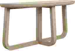 Gather 'round in light and lively style with the inspired Drew & Jonathan Canyon sofa table. Contemporary flair and a sandstone colored wash give this piece a look that's equal parts unique and familiar. The crossed base creates an interesting stirrup design, and the natural material and bent shapes evoke unmistakable midcentury character. Oak veneers make this piece easy to care for and enjoy for years to come.